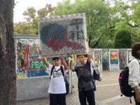 「原爆の子の像」の前で平和集会を行いました。平和を誓い、折り鶴パネルを捧げ、おりづるの歌を歌いました。その後、グループで碑めぐりをしました。