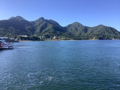 ホテルからバスに乗って宮島口へ。フェリーで宮島に渡りました。
