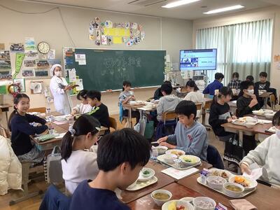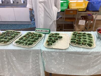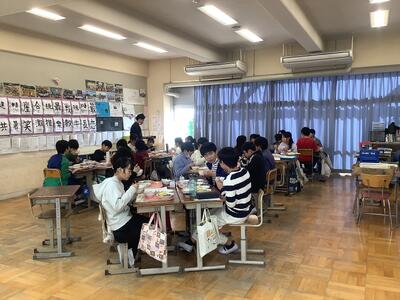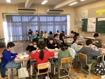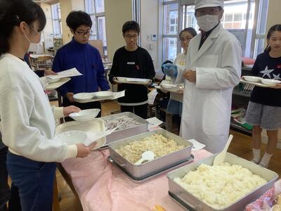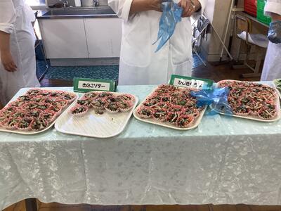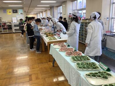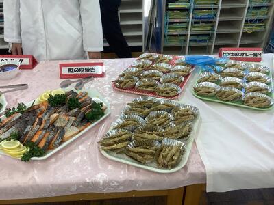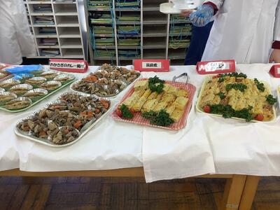 セレクト給食 投稿: ルーム管理者 (16:56) 今日は6年生のセレクト給食でした。さまざまなメニューから、自分で選んだものをいただきます。早朝より、給食室の調理員さんが作ってくださいました。ワークスペースにずらりと並んだ食べ物に歓声が上がりました。「いただきます」の挨拶も元気いっぱいでした。 Tweet -