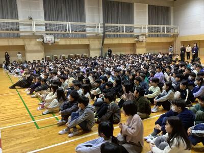 この後、3学期始業式を行いました。教頭先生のあいさつのもと、元気よく校歌を歌いました。校長先生の話もしっかり聞いていました。今学期の目標では、「3学期は休まずに元気に登校する!」「朝の準備をさっとします!」などの発表がありました。とても大事な目標です。
