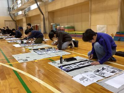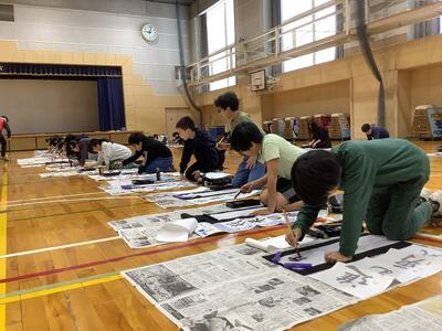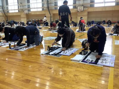 書き初め大会 投稿: ルーム管理者 (15:37) 体育館で書き初め大会を行いました。「将来の夢」もしくは「進む勇気」のどちらかを自分で選んで書きました。心を落ち着けて、一筆一筆、ゆっくりと進めていました。 Tweet -