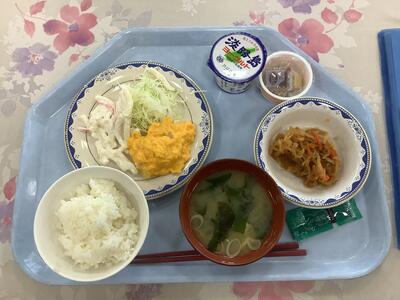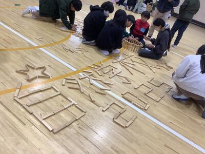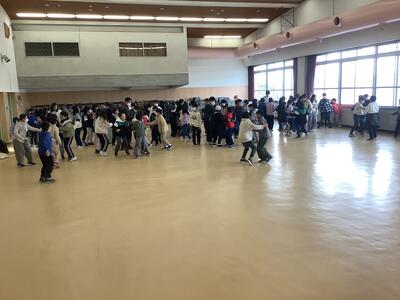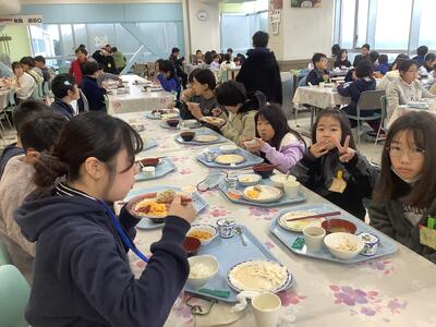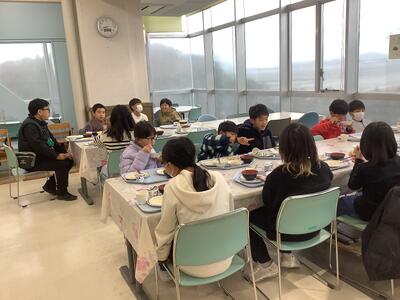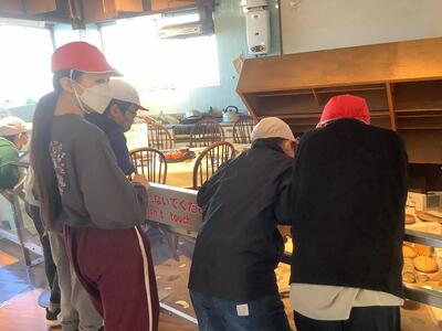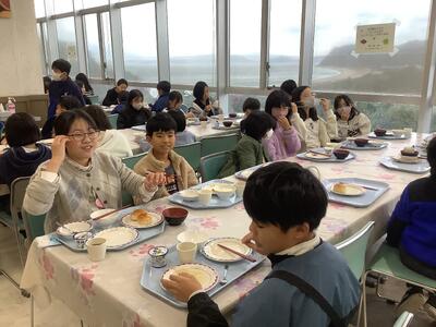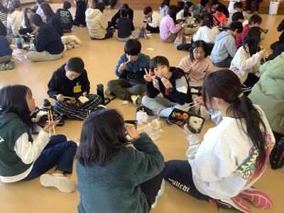 リーダーとのお別れ会の後、講堂でお弁当を食べました。