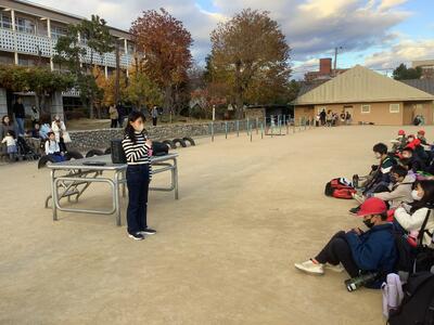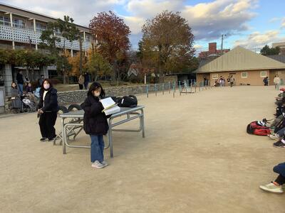 帰校式。自然学校の思い出について発表しました。一生の思い出になる自然学校だったと思います。がんばったこと、成長したことをこれからの学校生活に生かしていってほしいです。